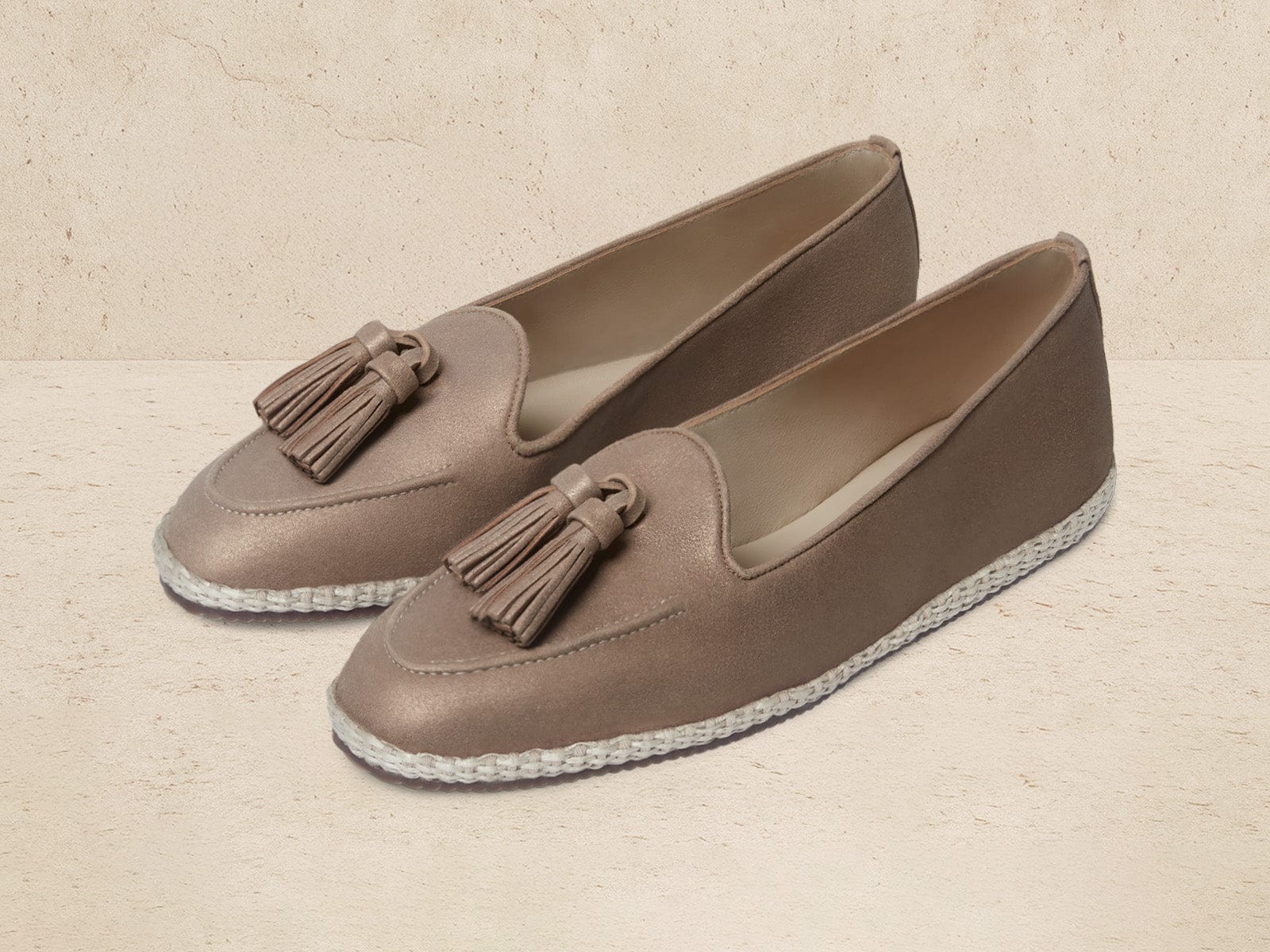 Calvi Tassel Espadrillesin Golden Sand Luxe Suede