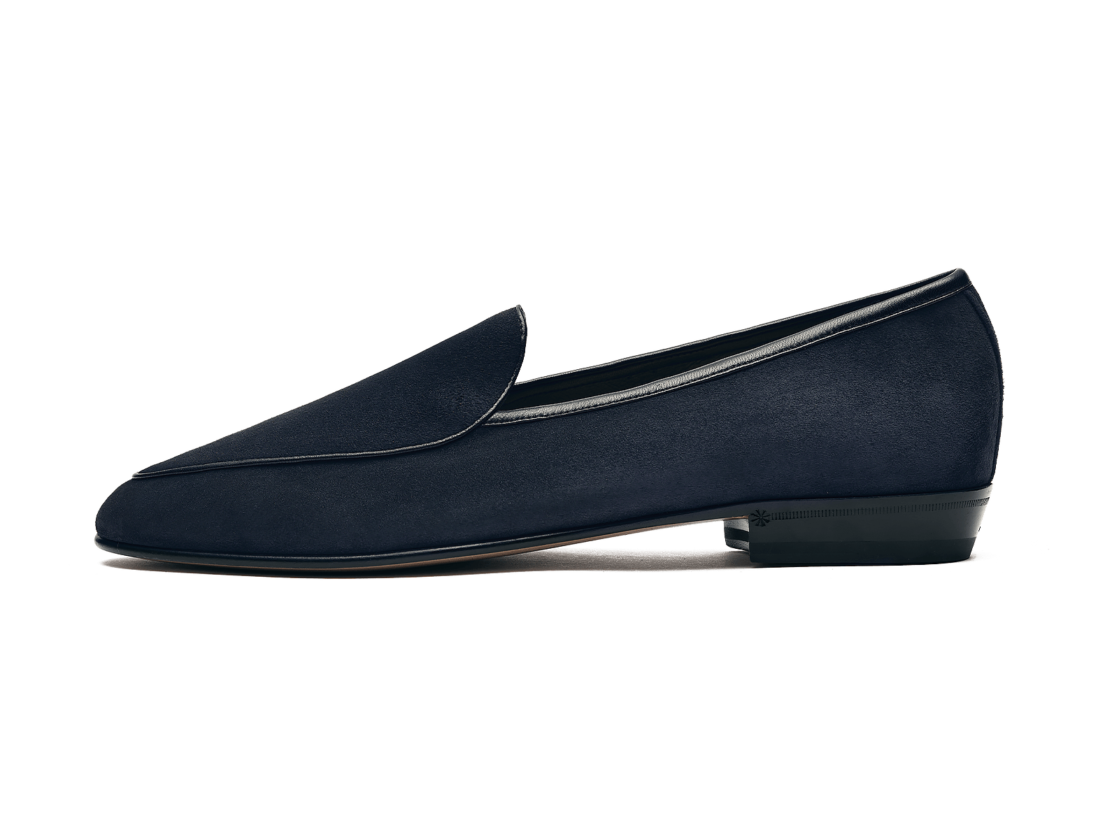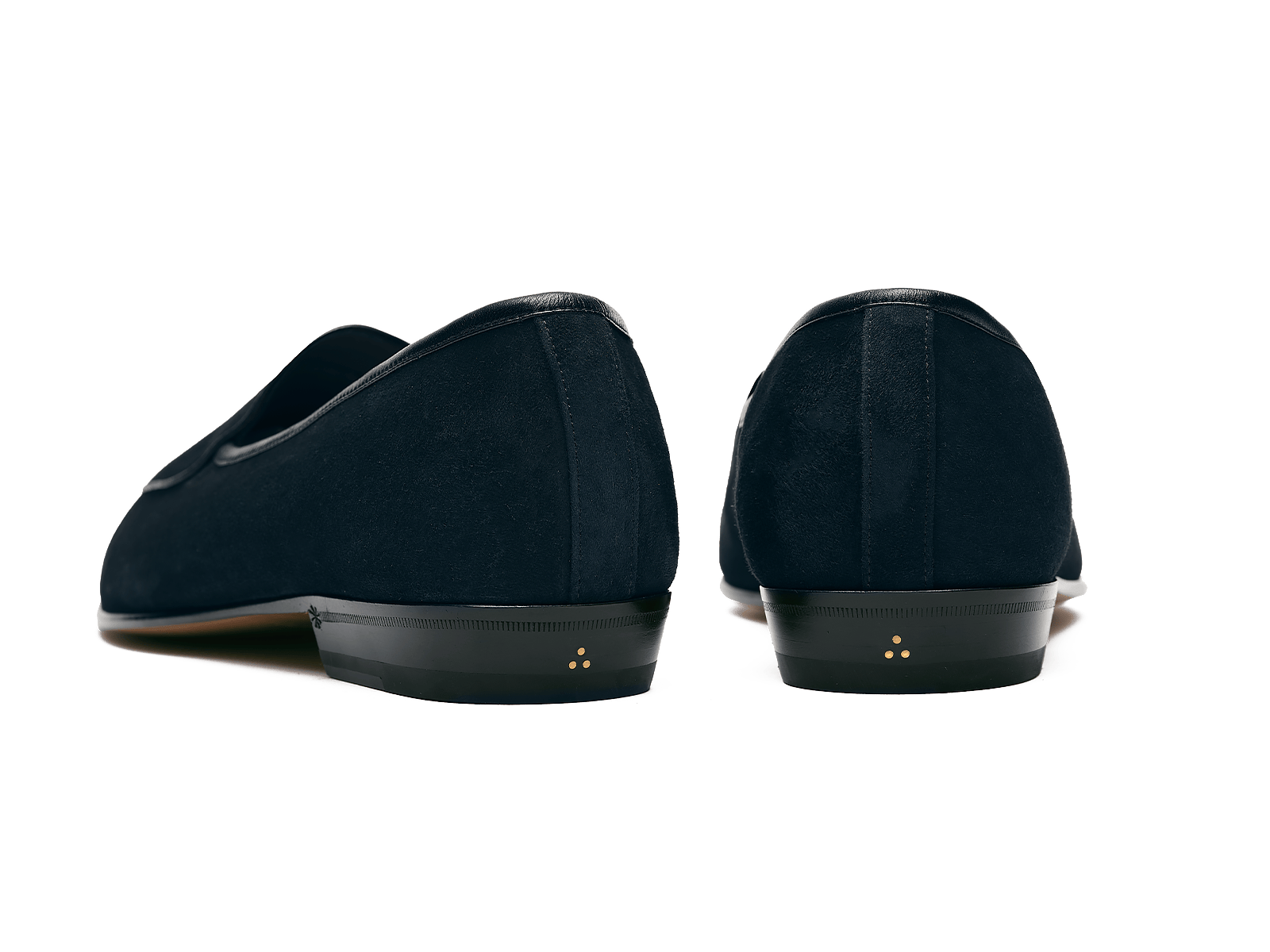 A Perfect glove-fit from the very first moment, these feature our finest bespoke Asteria suede leathers in Midnight navy, adapting perfectly to the unique profile of your feet for a bespoke fit.