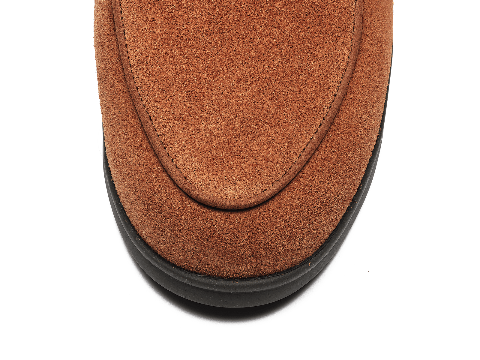 Softly grounded in Moyen Brown Suede, the Stride Loafer exudes quiet sophistication. The texture of fine suede meets the enveloping warmth of a shearling lining, creating a balance of comfort and polish. Finished with a flexible rubber sole, it’s crafted for graceful movement through the colder months - comfort elevated to an art form.