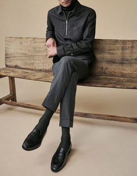 The Grand Varenne Loafers in Dark Brown Suede offers a seamless blend of elegance and practicality. The fine-grain calfskin provides a sophisticated look that works effortlessly in formal settings, while the Baudoin & Lange ginkgo leaf penny strap adds a refined detail to this classic design.