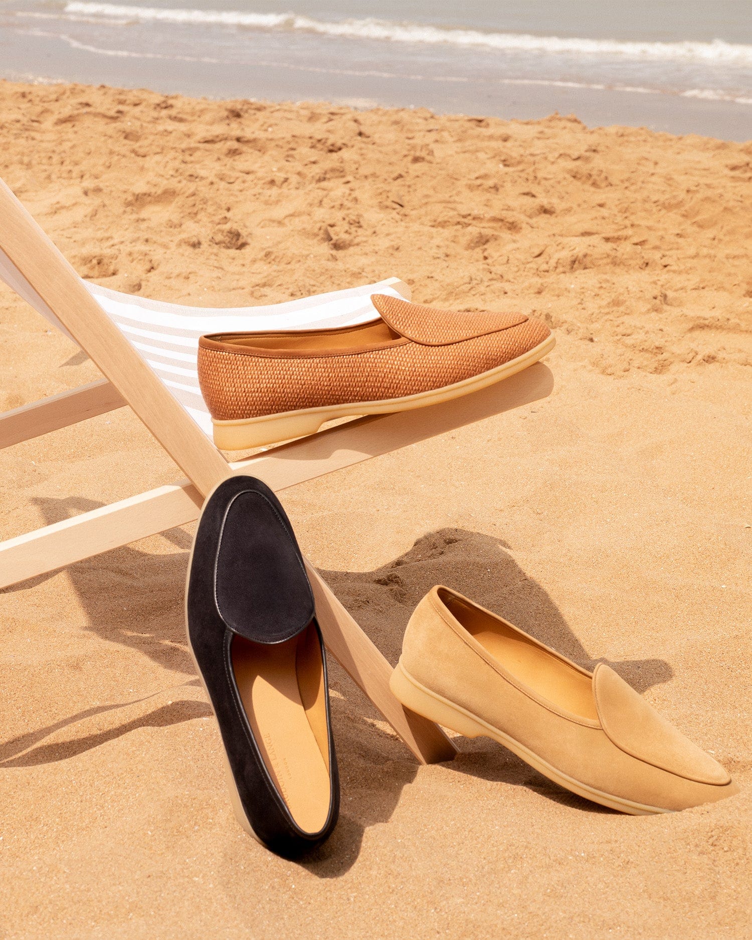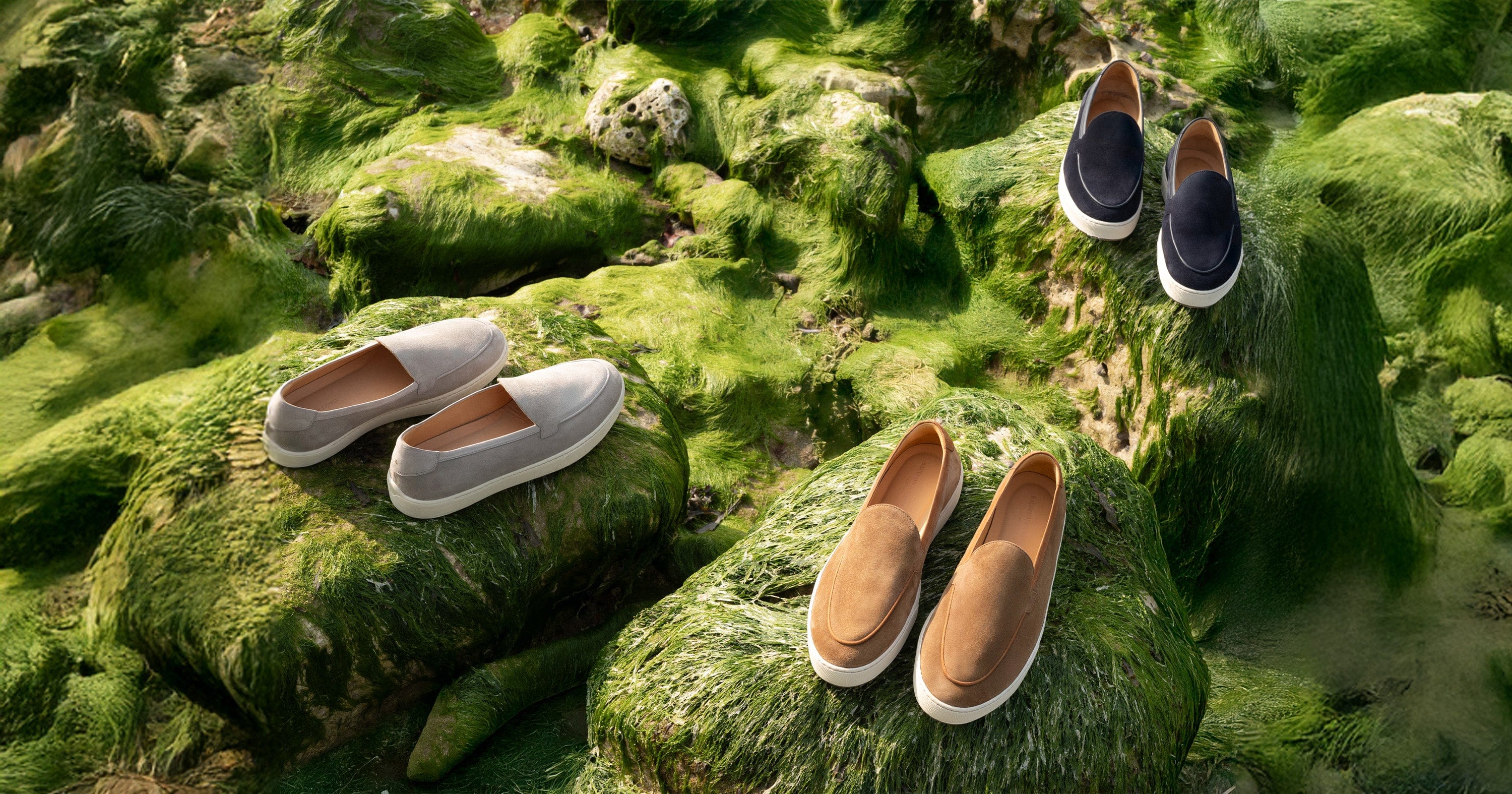 His collection is grounded in refined versatility and thoughtful craftsmanship. Discover easy-to-slip-on silhouettes in classic navy and rich earth tones, crafted from supple leathers that balance structure with remarkable comfort. Engineered for seamless transitions from city to coast, they are complemented by minimalist slides offering an elegant answer to shoreline ease.