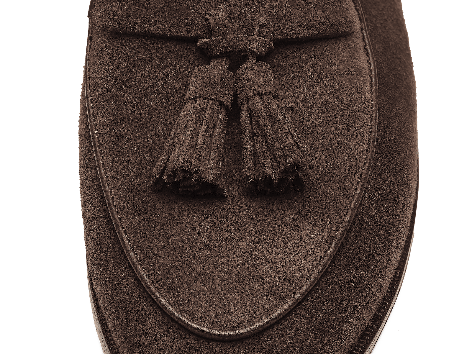 The Grand Conti in Dark Brown Shield Suede refines the tassel loafer with substance and restraint. Crafted from dense Shield Suede for durability and depth, it balances softness with structure. The hand-tied tassels and clean upper give it purpose without excess - a shoe built for everyday movement, where practicality meets understated strength.