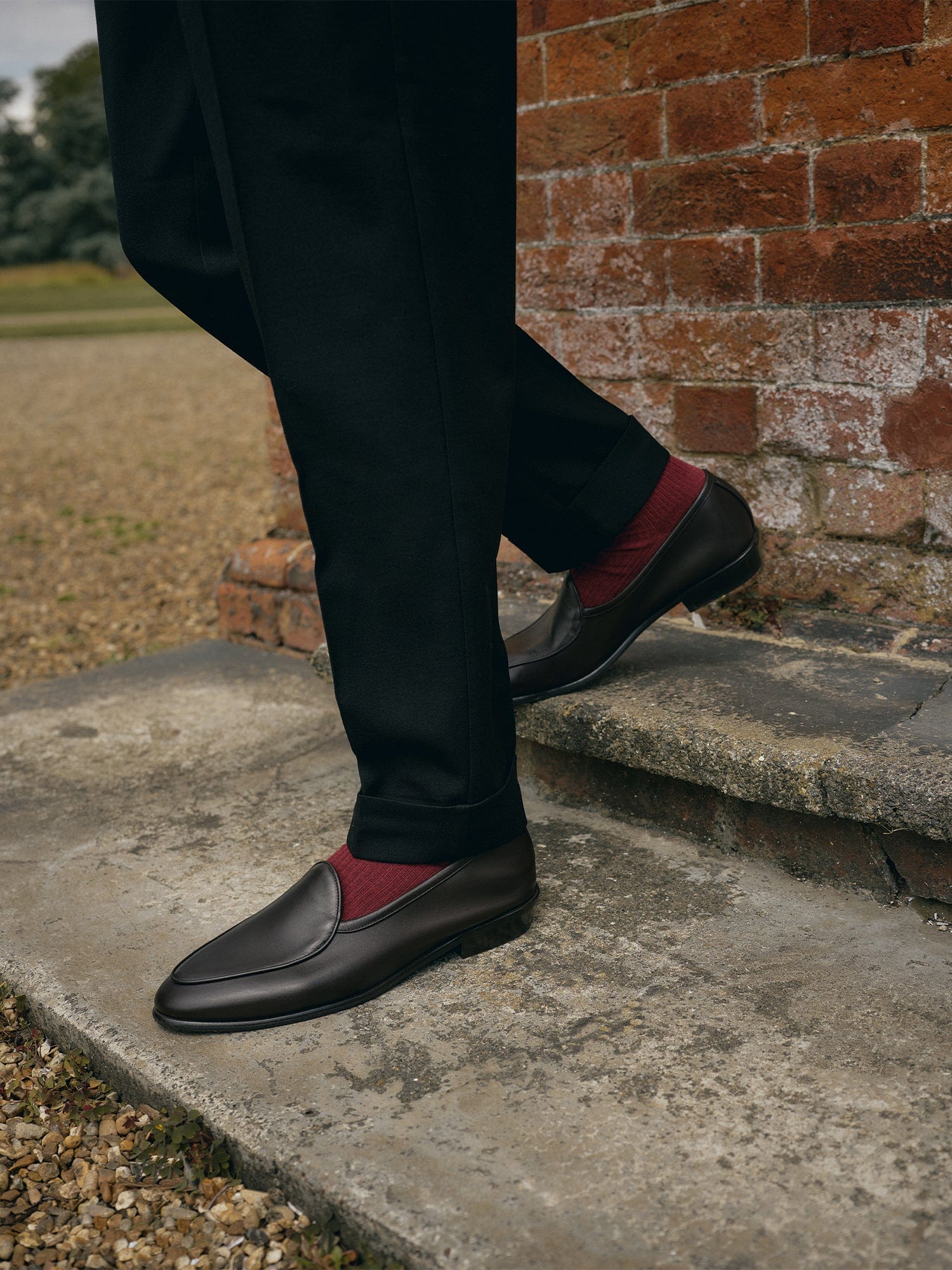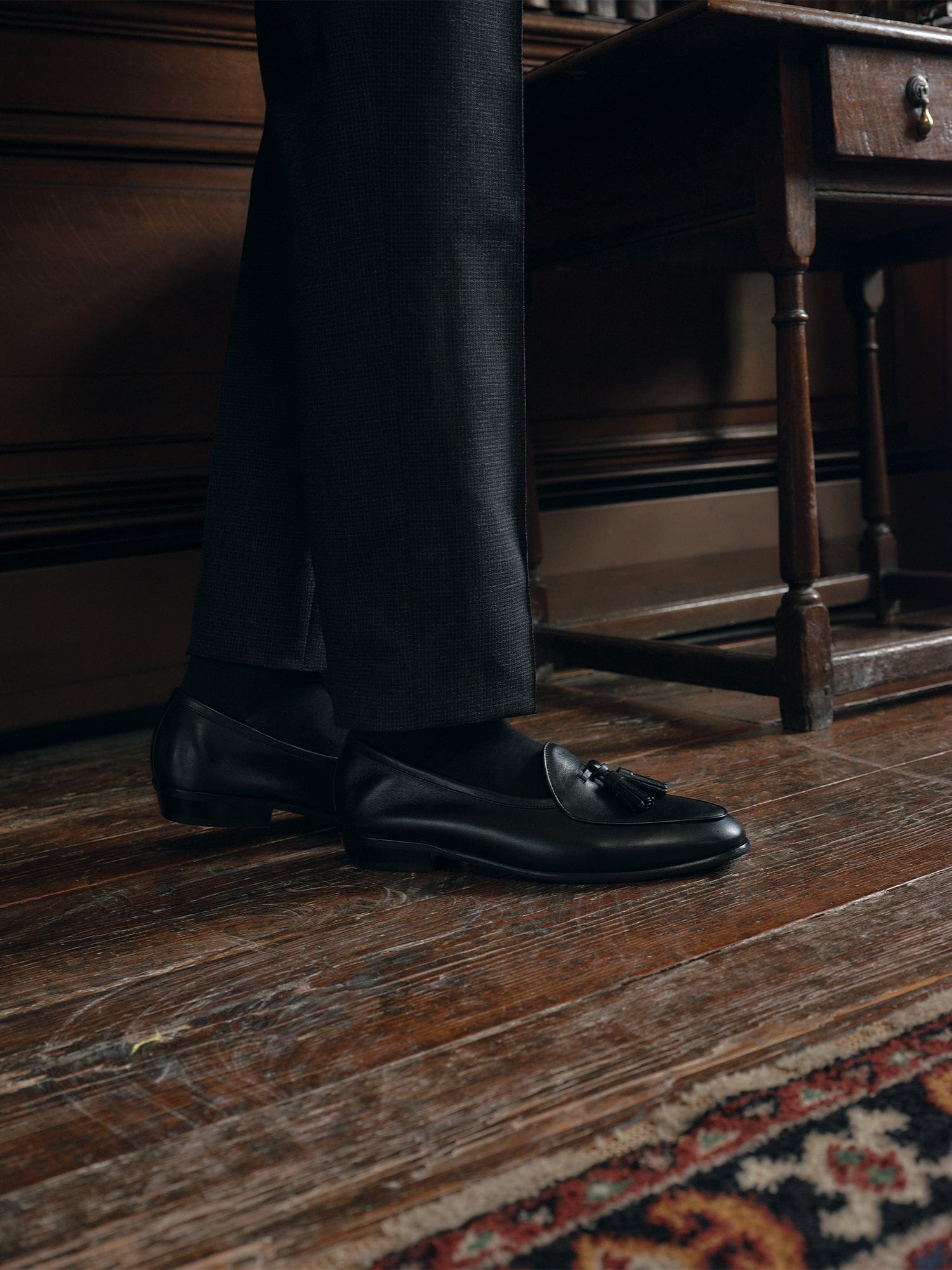 Old Sagan Rubber Tassel Loafersin Dark Brown Drape Calf