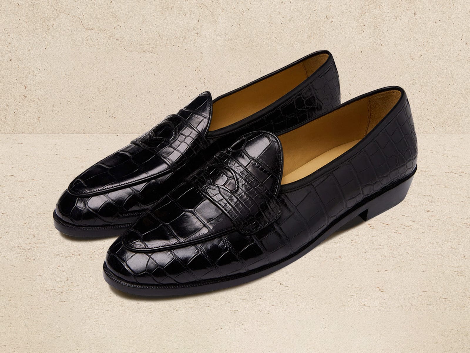 最も貴重な中央部を使用したクロコダイルシューズ用のパターンと、ステッチや継ぎ目は最小限に抑えた仕立てで最上級の贅沢をお届けします。光沢のある質感のクロコダイルシリーズは、すべて手作業で丁寧に着色し磨いています。