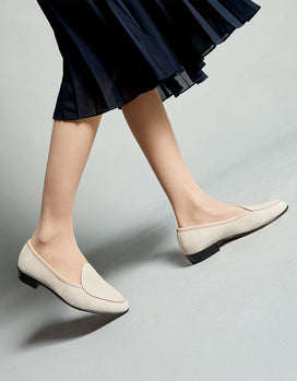 カシミアの柔らかなスエードとレザーが足にフィットし、快適さがさらに増します
