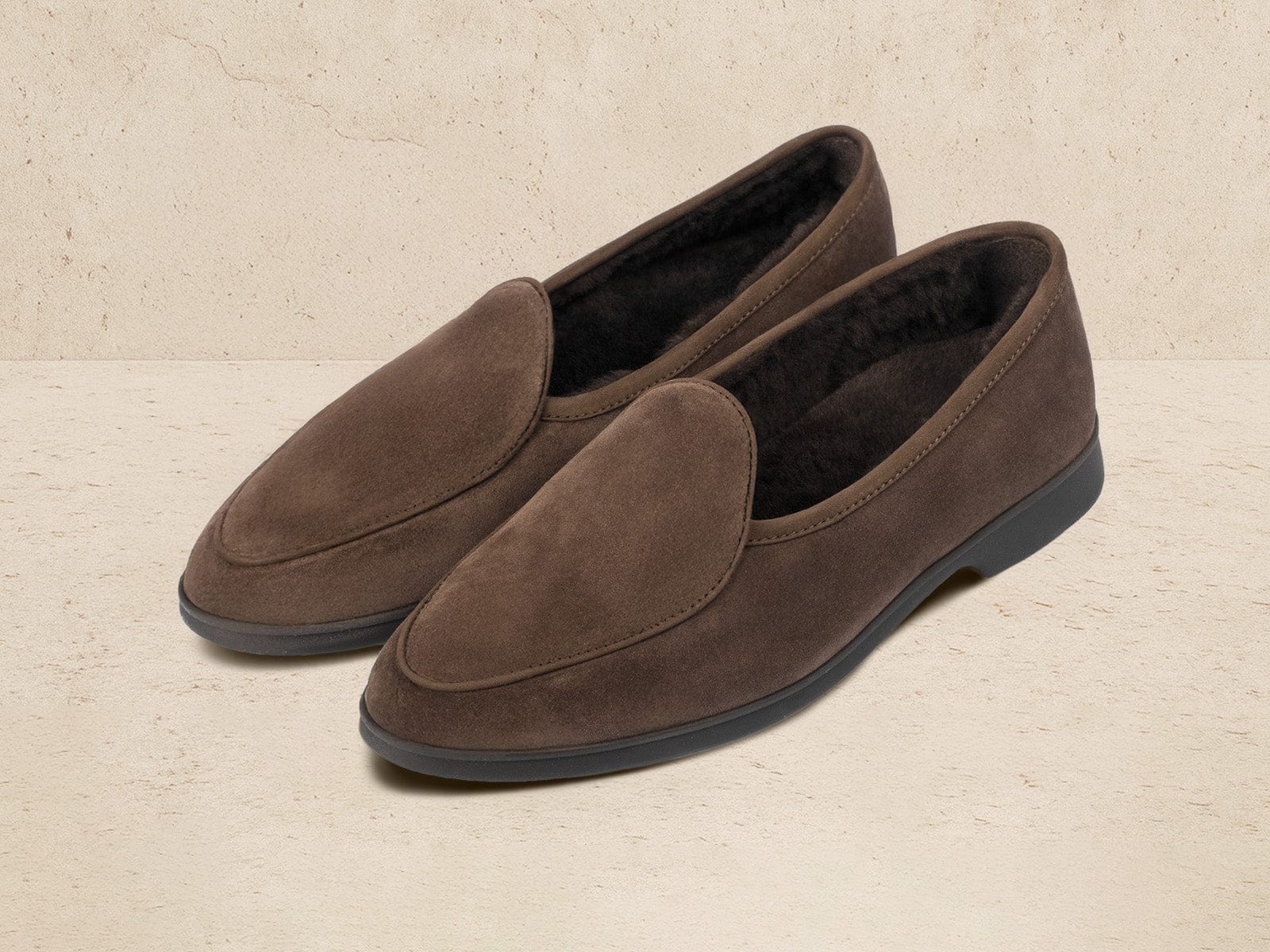 Made for seamless versatility, the shearling lined Stride Loafers are designed with a fully integrated rubber sole, offering enhanced grip and durability throughout the colder months. The rich suede, combined with a plush shearling lining, ensures that these loafers not only look refined but also offer warmth when needed.